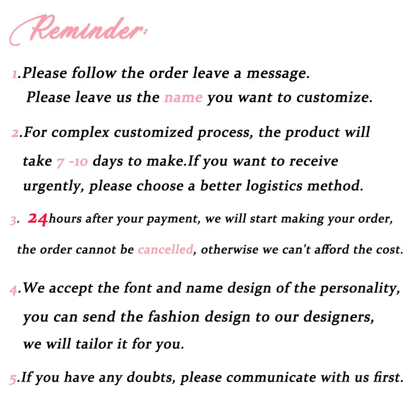 Orders cannot be processed until customization details are received. Delays in sending details may delay production and shipping.